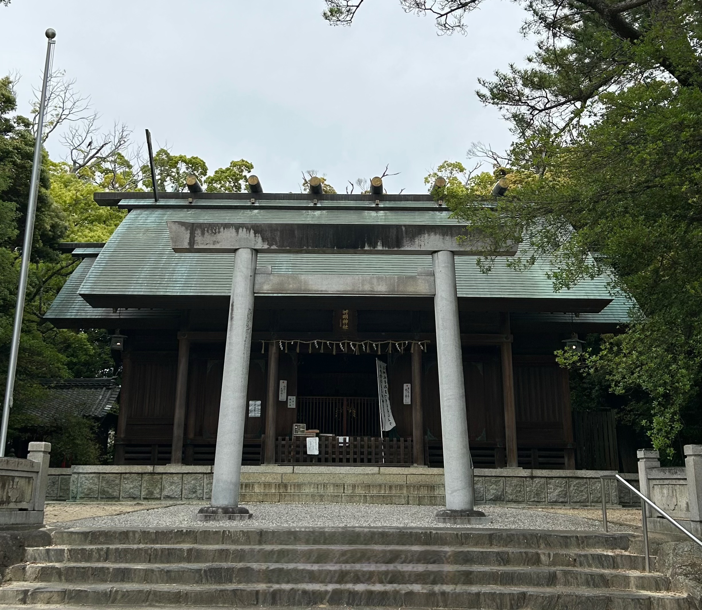 古来神明神社は現在の築山の位置に鎮座されていたが、昭和12年熱田神宮から下附された御神木によって現在の所に荘厳な神明造りの社殿として再建された。同時に境内も現在の広さに拡張された