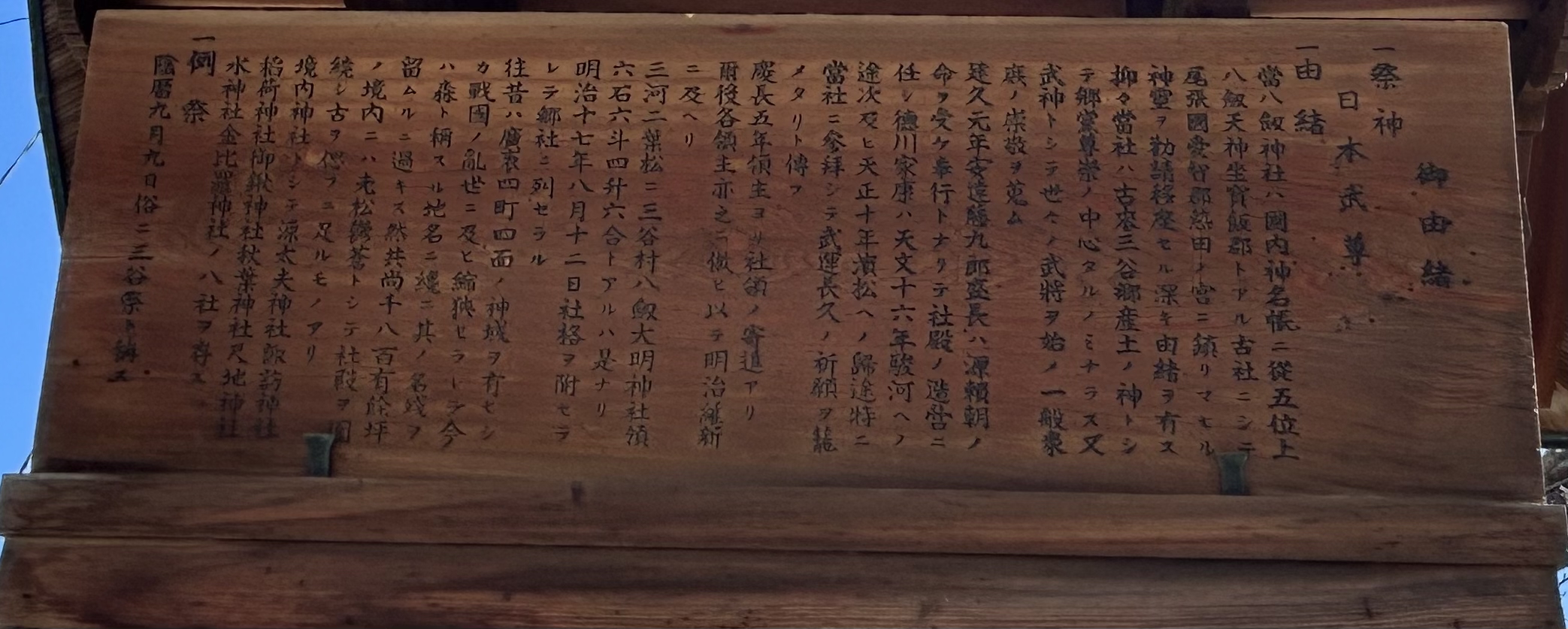 三谷の郷は「雄大な景観の素晴らしいところ」「天地自然の景色の素晴らしいところ」「花鳥風月の素晴らしいところ」。郷の東北に古来より山全体を神として崇められている砥神山があり、この一帯は豊かな自然に恵まれ緑の木々に覆われている。 古の人々は神霊の力をあずかるために巨木や巨石を神の「依代」とし信仰したが、三谷の郷の人々も砥神山の巨石を神の依代とした。 しばらく砥神山を登ると八劔神社の奥の院があり、二つに割れた大きな巨石がある。三谷の郷の古くからの言い伝えによるとヤマトタケルが能褒野(三重県鈴鹿市)にて罷り去るとき「倭は国のまほろばたたなずく青垣山隠れる倭しうるはし」と詠まれた。 その時、三谷の山々にはそれは恐ろしい雷が鳴りわたり、稲妻が幾度となく砥神山に落ちた。鳴りわたった後に村人が見たものは巨岩が二つに大きく割れた姿であった。村人は「これは日本武尊の霊」と叫び悲しんだ。